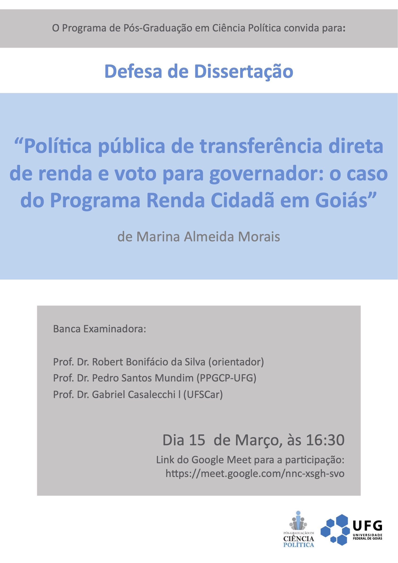 Defesa da dissertação de Marina Almeida Morais Dia 15/03/2021 via Google Meet Tweet Listar Todas Voltar