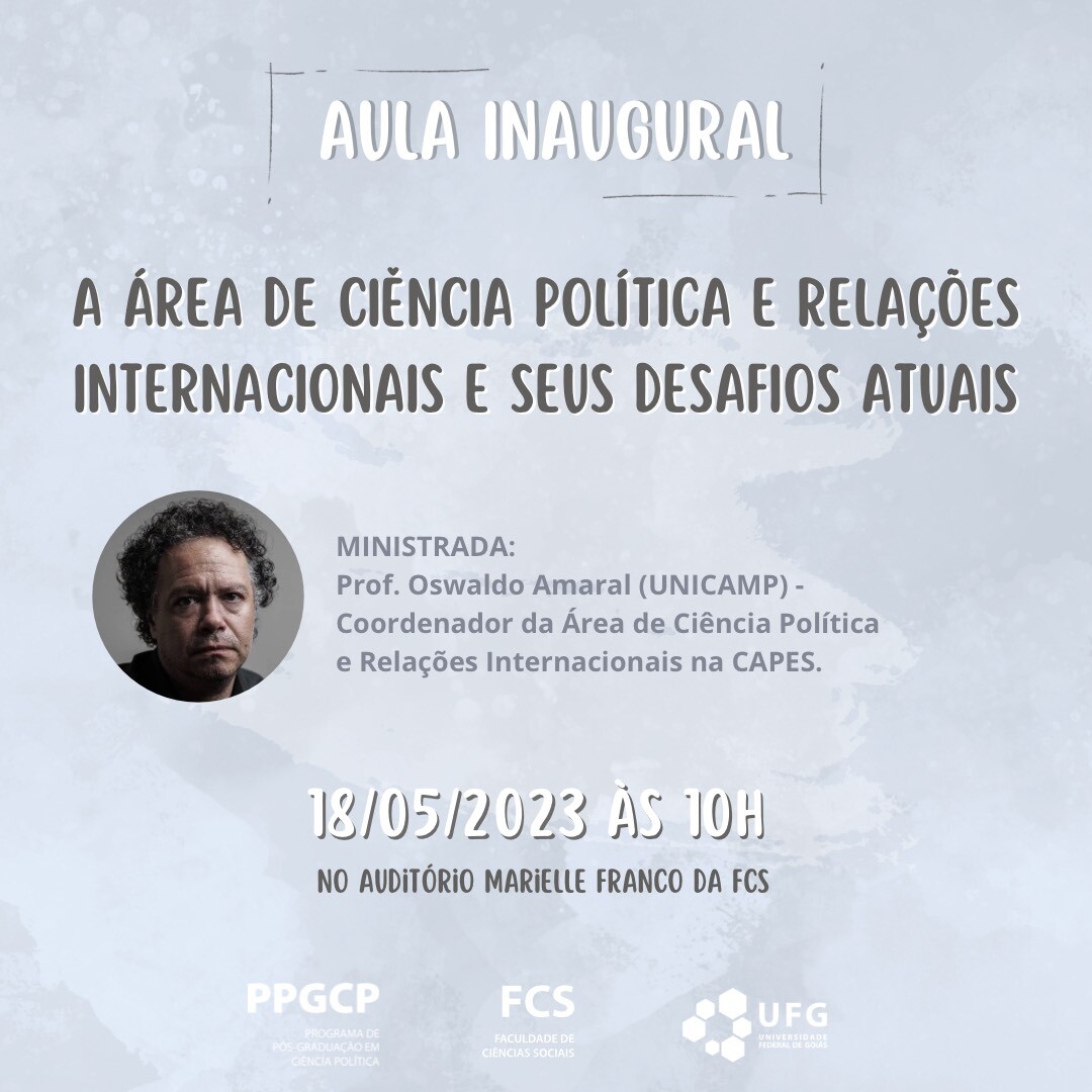 No dia 18 de maio de 2023, às 10 horas, o professor Oswaldo Amaral, professor da Unicamp e coordenador da área de Ciência Política e Relações Internacionais na CAPES, proferirá a aula inaugural do PPGCP "A área de Ciência Política e Relações Internacionais e seus desafios atuais".