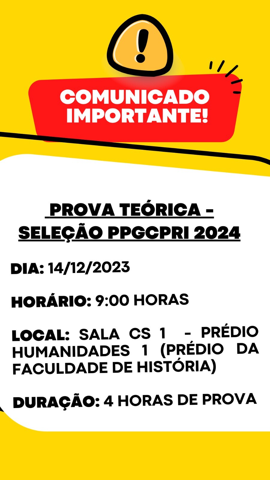 Orientações prova teórica - Seleção PPGCPRI 2024